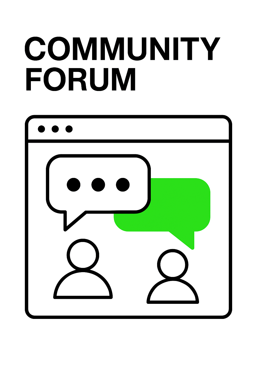 Minimalist graphic illustrating a community forum interface with dialogue bubbles, ideal for online discussion platforms or social media.