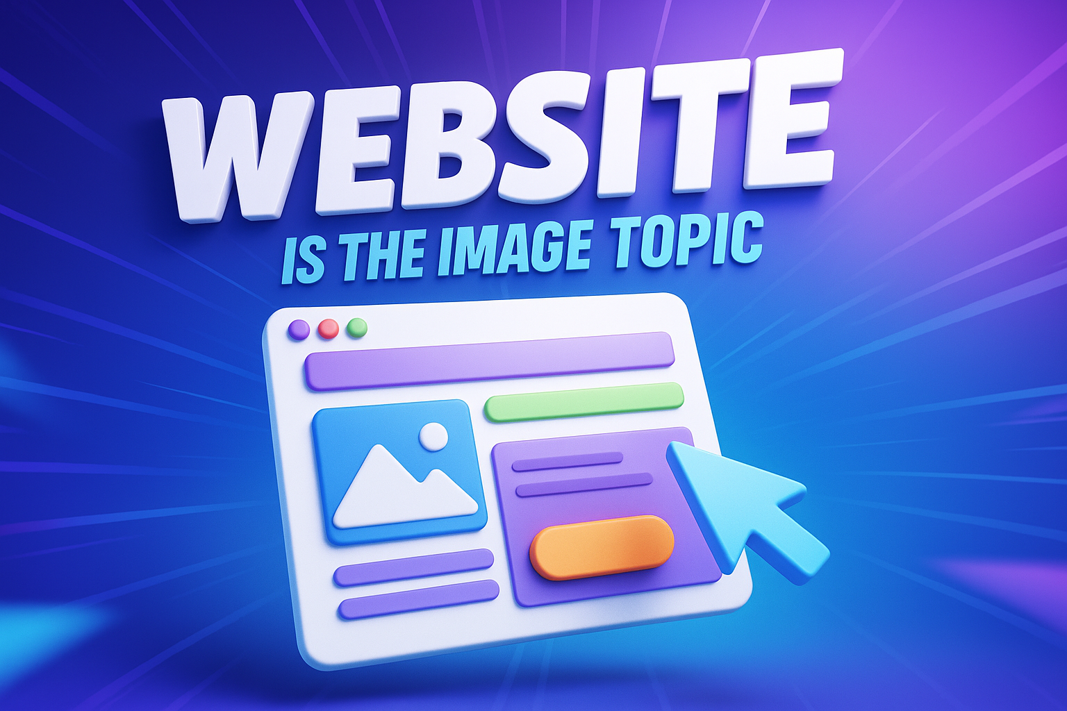This image showcases a vibrant 3D illustration of a website interface, featuring bold typography and dynamic background elements that create depth and movement.