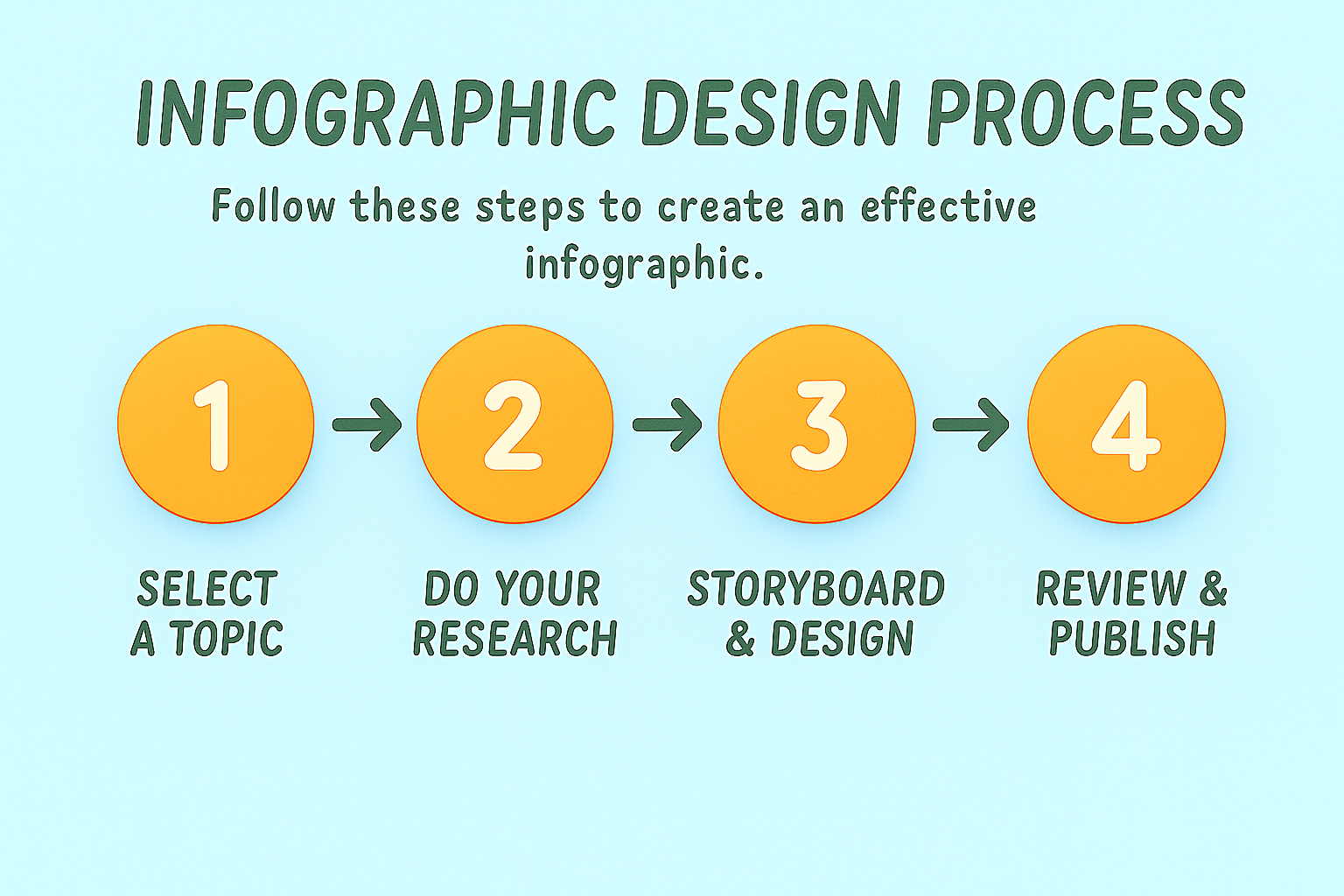 A step-by-step infographic illustrating the process of creating an effective infographic, featuring a clean design with vibrant colors and clear typography for educational purposes.