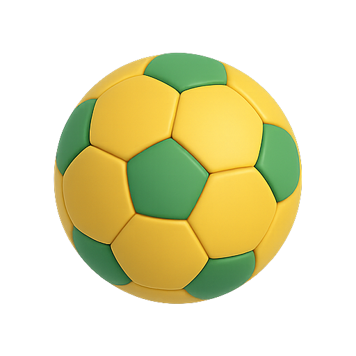 Stylized 3D representation of a soccer ball with a vibrant yellow and green color scheme. Ideal for sports-related graphics, marketing materials, or playful designs.