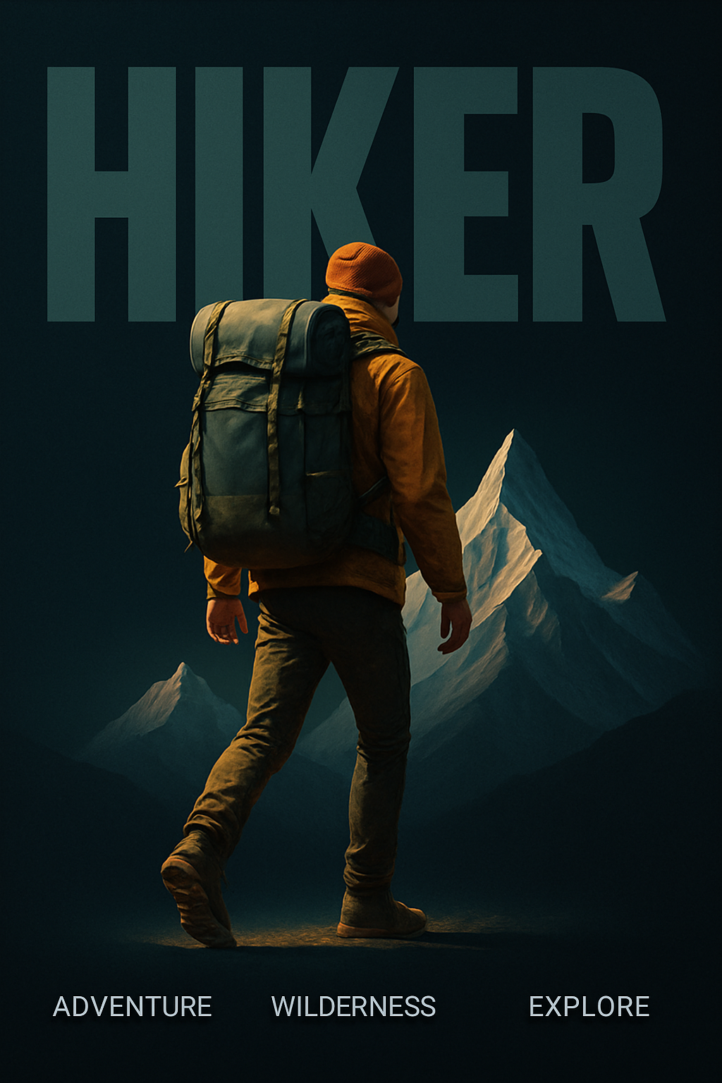 Hiker Journeying Through Majestic Mountains in Bold Minimalist Style