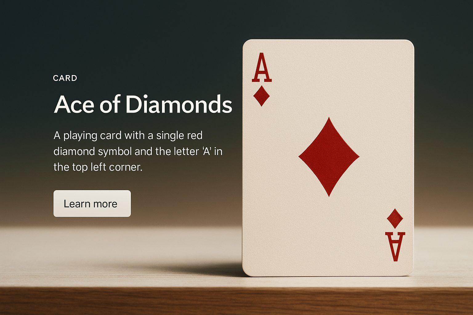 An elegant illustration of the Ace of Diamonds playing card, featuring a red diamond symbol and the letter 'A' in the top left corner, set against a gradient background.