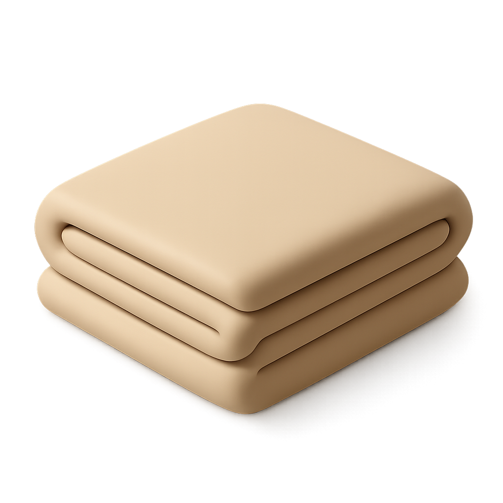 This image features a neatly folded blanket represented in a stylized 3D icon format. The blanket has a soft texture and a beige color, giving it a warm and inviting appearance.