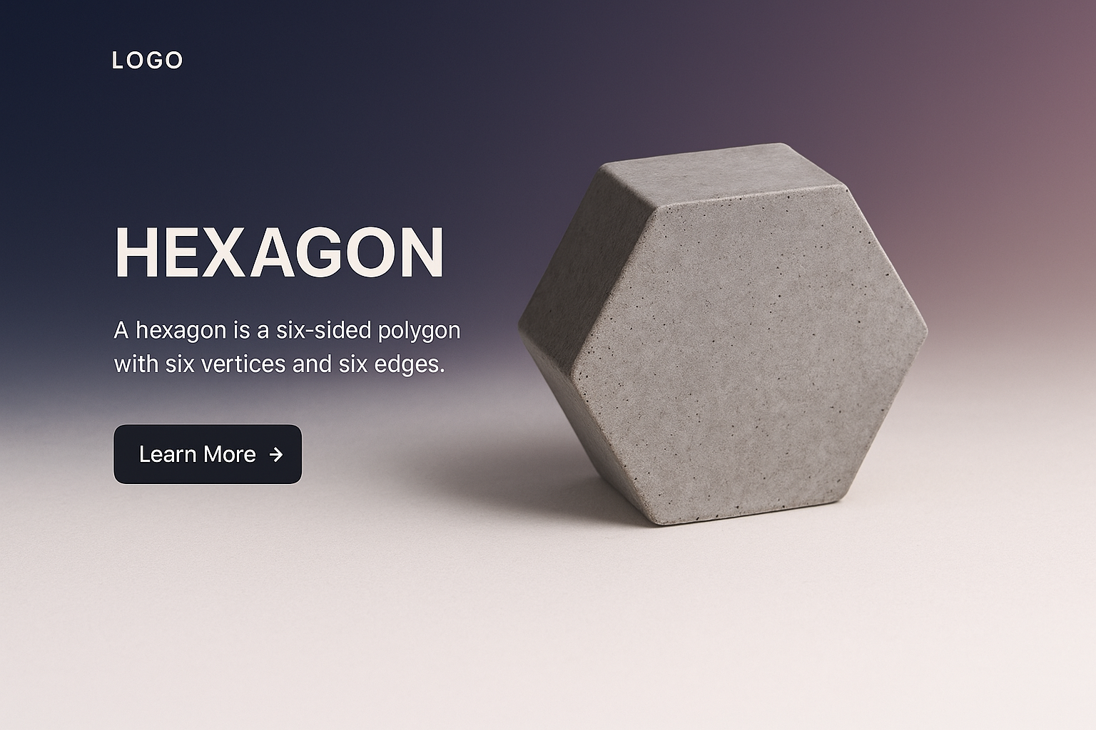 A modern web design showcasing a hexagon-shaped object with text. The gradient background transitions from dark to white, enhancing the minimalist aesthetic.