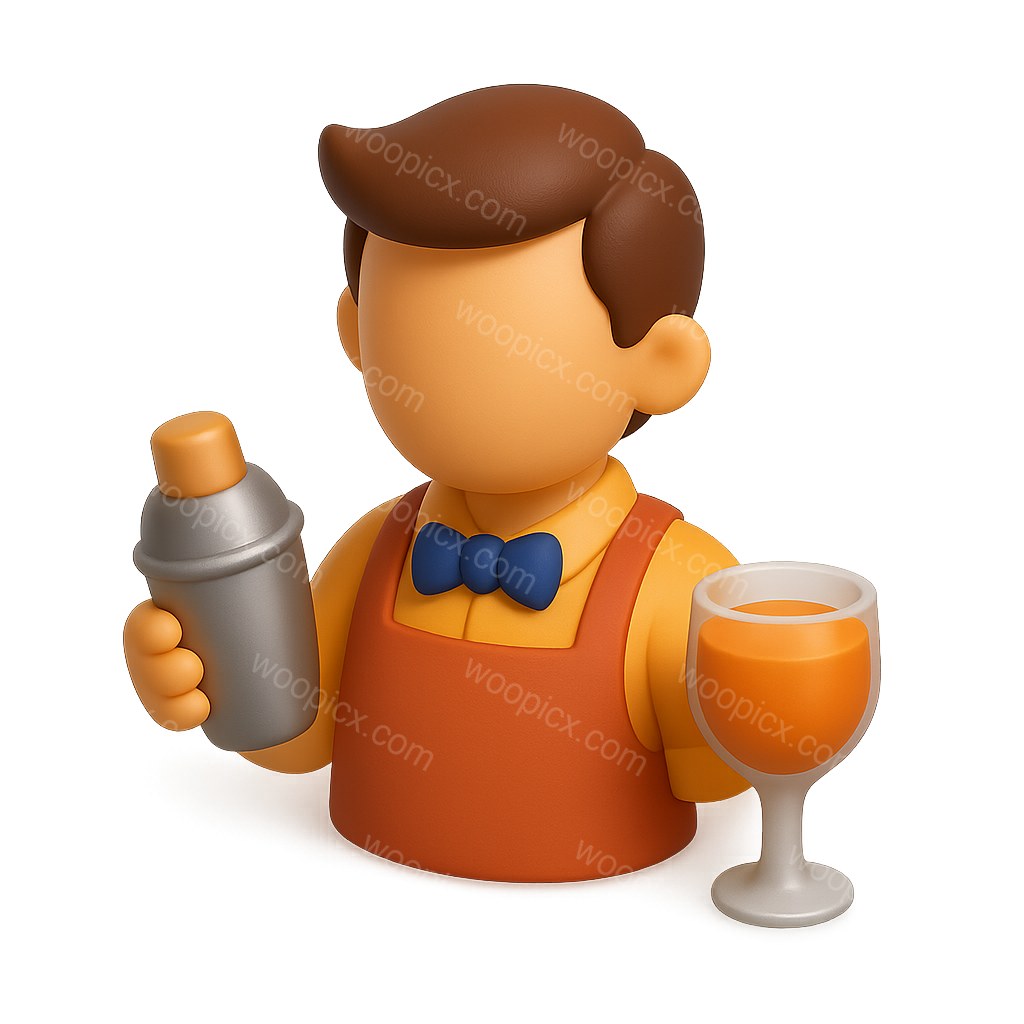 /Premium/Collection: /by davooda/A charming 3D icon of a bartender holding a cocktail glass and a shaker. The figure features a simple, cartoonish design with a three-quarter view and vibrant colors, set against a soft gradient background.