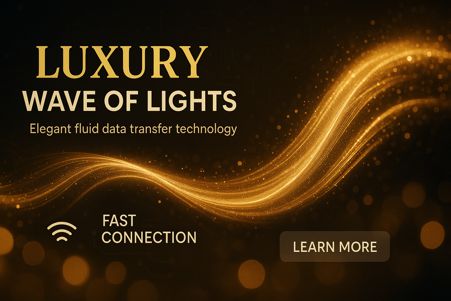 /Collection: /by davooda/Type: PNG/A visually striking promotional banner showcasing elegant fluid data transfer technology. The design features a luxurious wave of lights with a modern aesthetic, ideal for tech marketing.