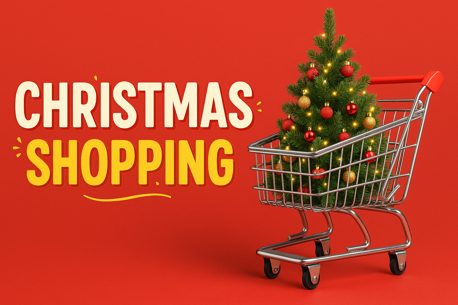 Festive Holiday Shopping Concept with Christmas Tree in Cart