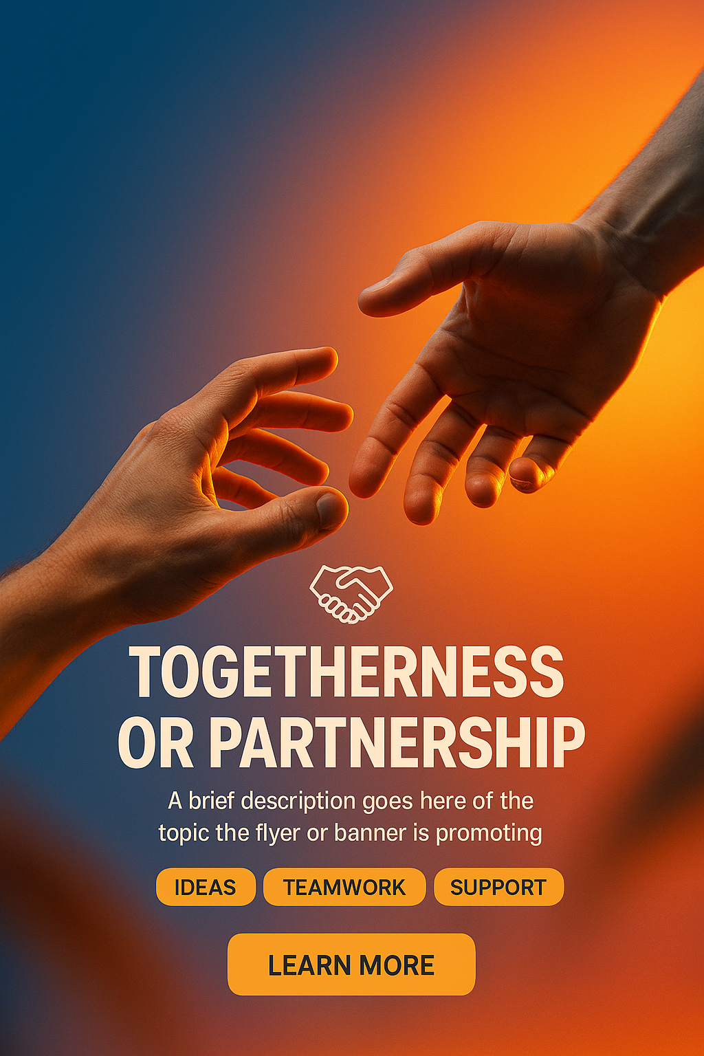 /Collection: /by davooda/Type: PNG/This is a promotional banner featuring hands reaching out to each other, symbolizing partnership and teamwork. The warm gradient background enhances the theme of connection.