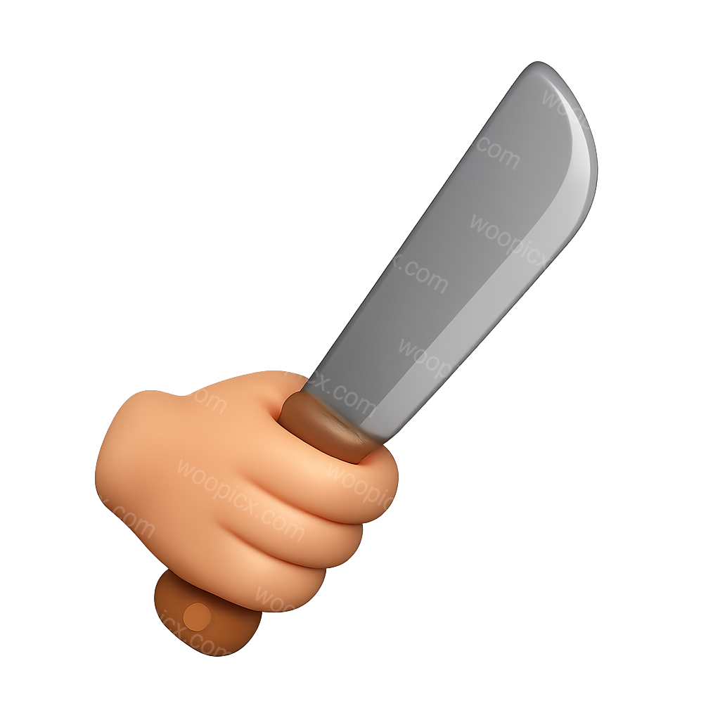 A 3D icon depicting a hand grasping a machete, rendered in a three-quarter view with a transparent background, showcasing a volumetric and isometric style.