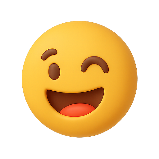 A vibrant winking smiley emoji featuring a cheerful expression, perfect for digital communication and social media. Ideal for conveying humor and friendliness.
