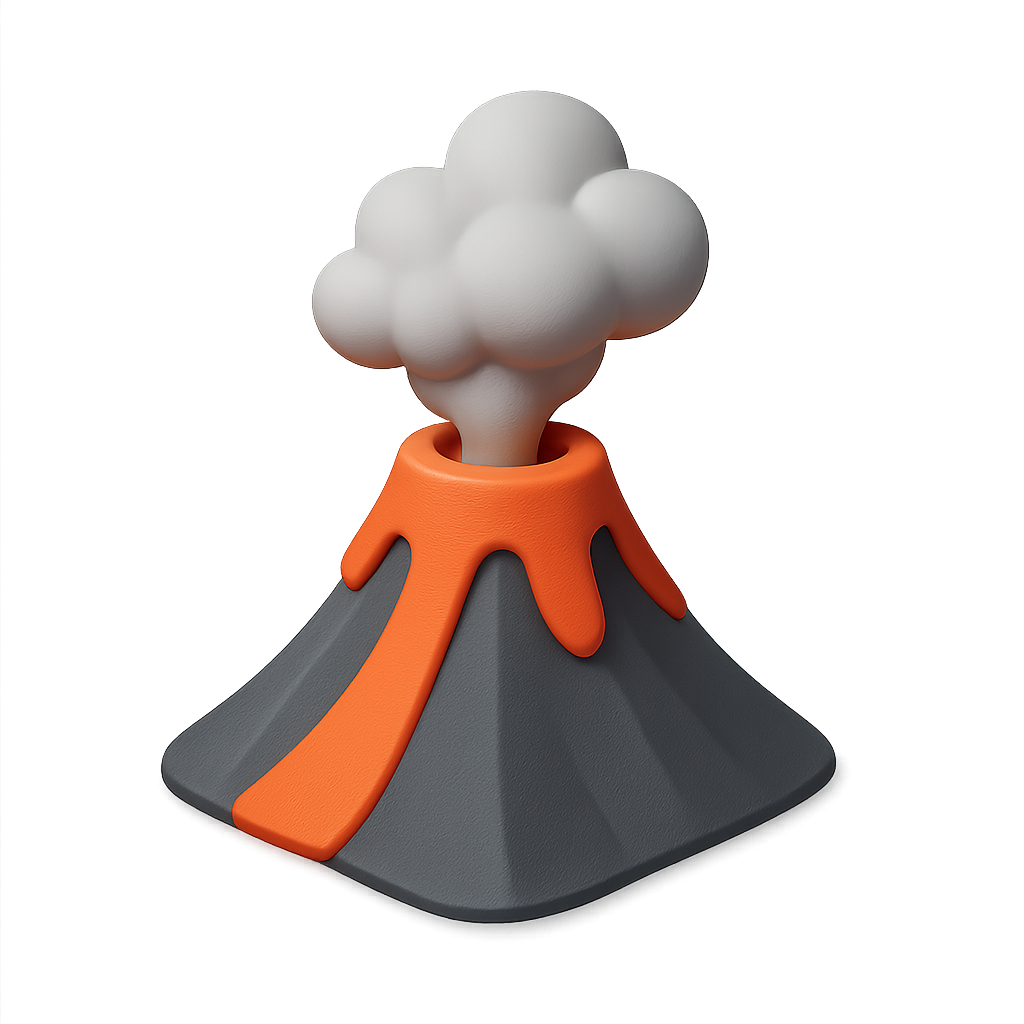 3D Volcano Icon with Smoke and Lava Flow