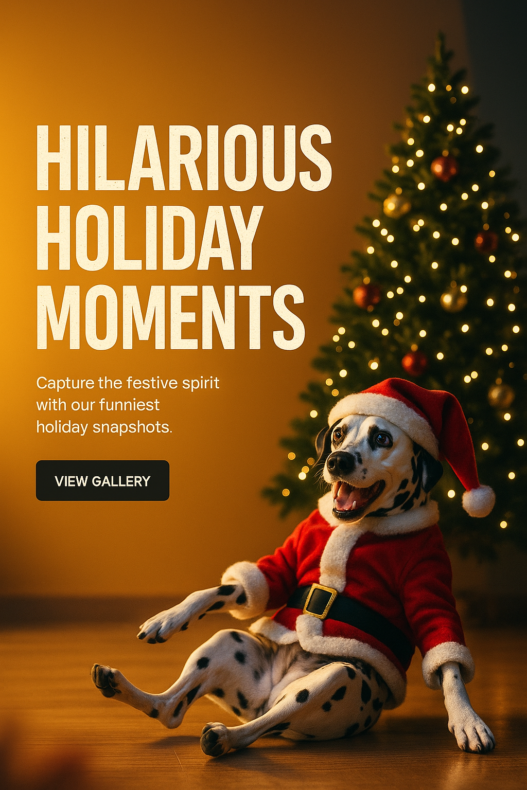 A lighthearted image featuring a dog in a Santa costume, set against a Christmas tree. Ideal for social media posts promoting festive content.