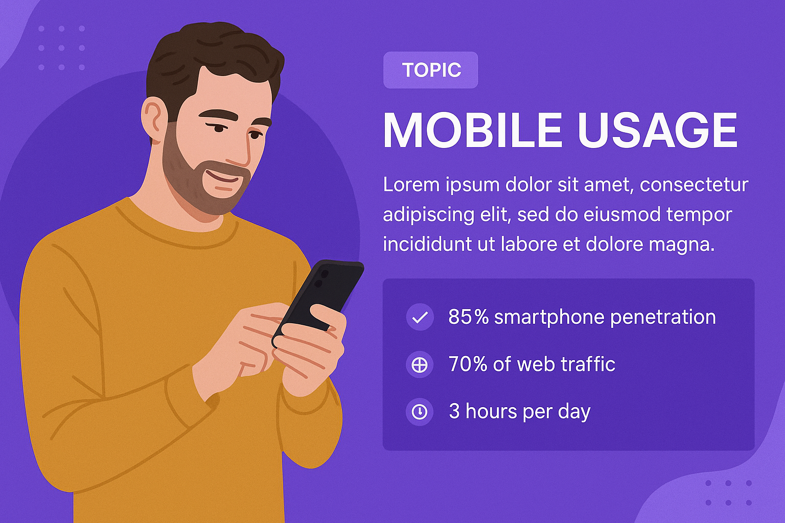 Informative infographic showcasing mobile usage statistics with a modern illustration style. Ideal for presentations or digital marketing.
