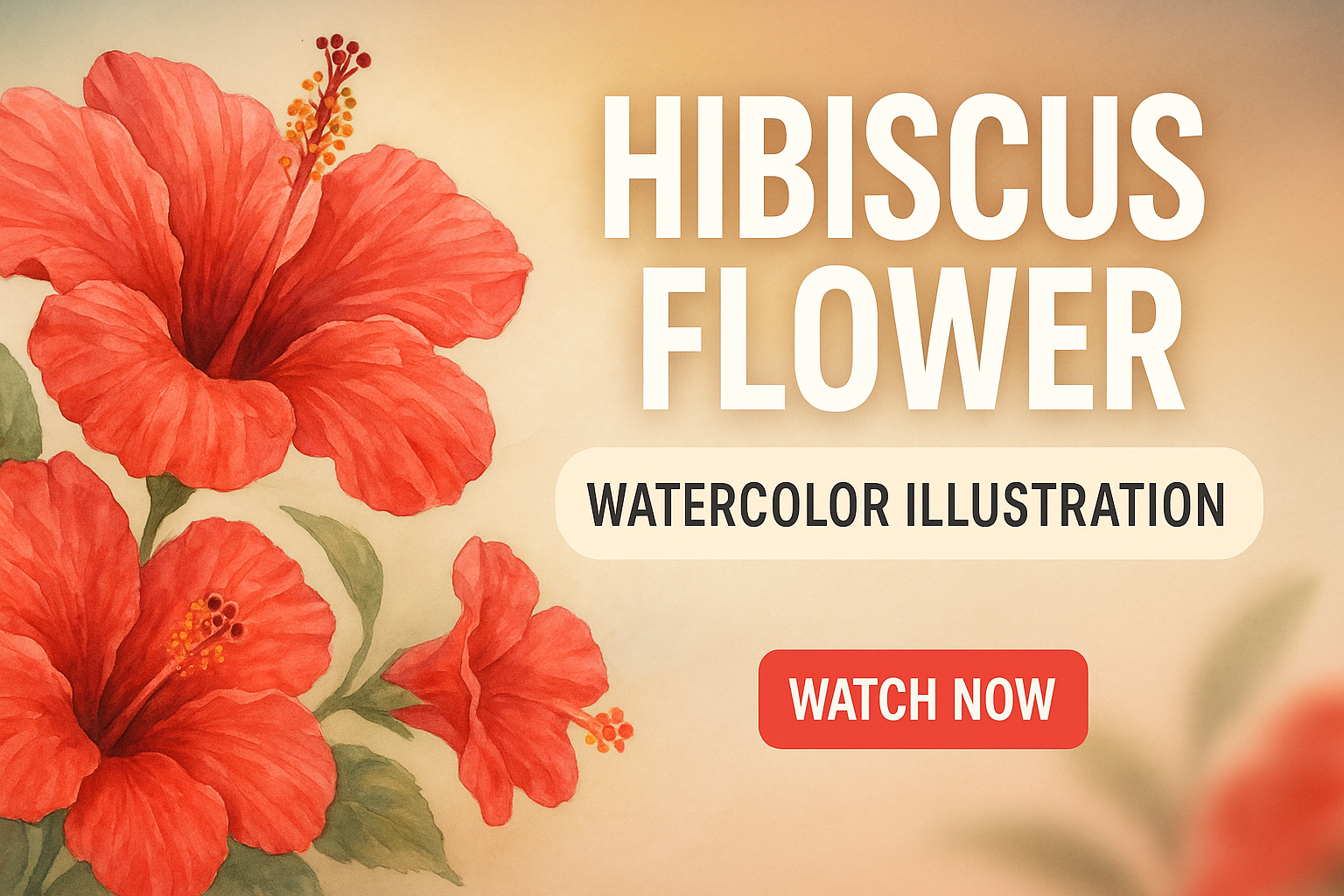 Beautiful watercolor illustration depicting vibrant hibiscus flowers, ideal for floral art enthusiasts and nature-themed content. The soft background enhances the flower's colors.
