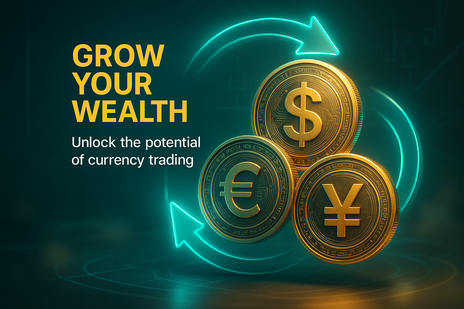 Financial Investment Promotion Graphic Featuring Currency Symbols