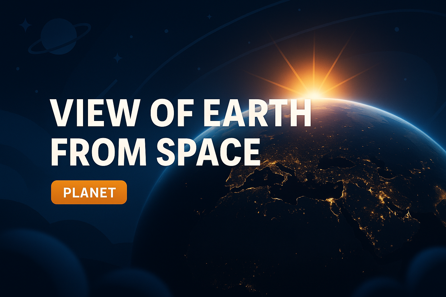 A captivating digital illustration showcasing Earth from space during sunrise. The design features vibrant colors and detailed elements, ideal for educational or promotional uses in astronomy or space exploration.