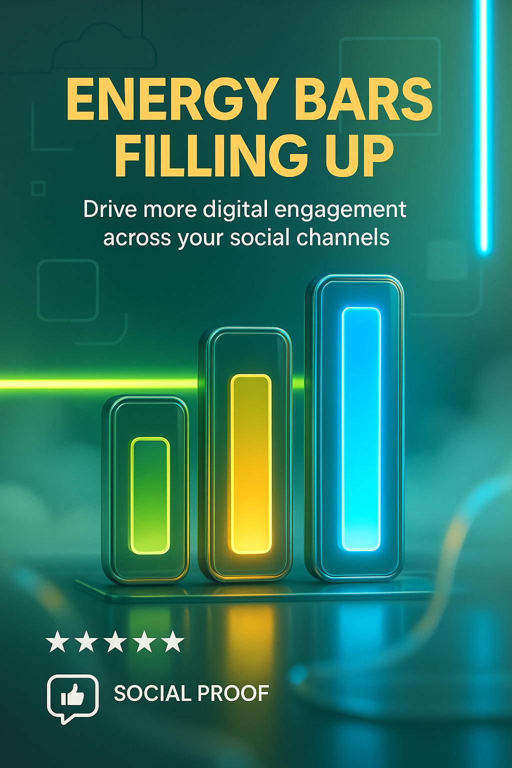 Colorful infographic depicting energy bars to represent digital engagement metrics, designed with modern, sleek visuals for social media marketing.