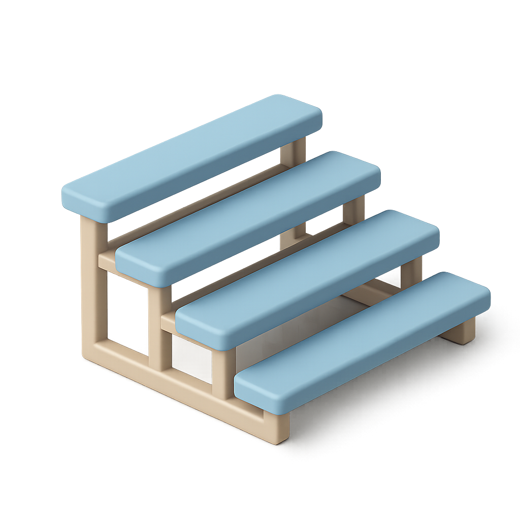 /Collection: /by davooda/Type: PNG/A 3D isometric illustration of bleachers featuring a three-quarter view. The design showcases layered seating with a light blue color and a beige structure, set against a soft gradient background.