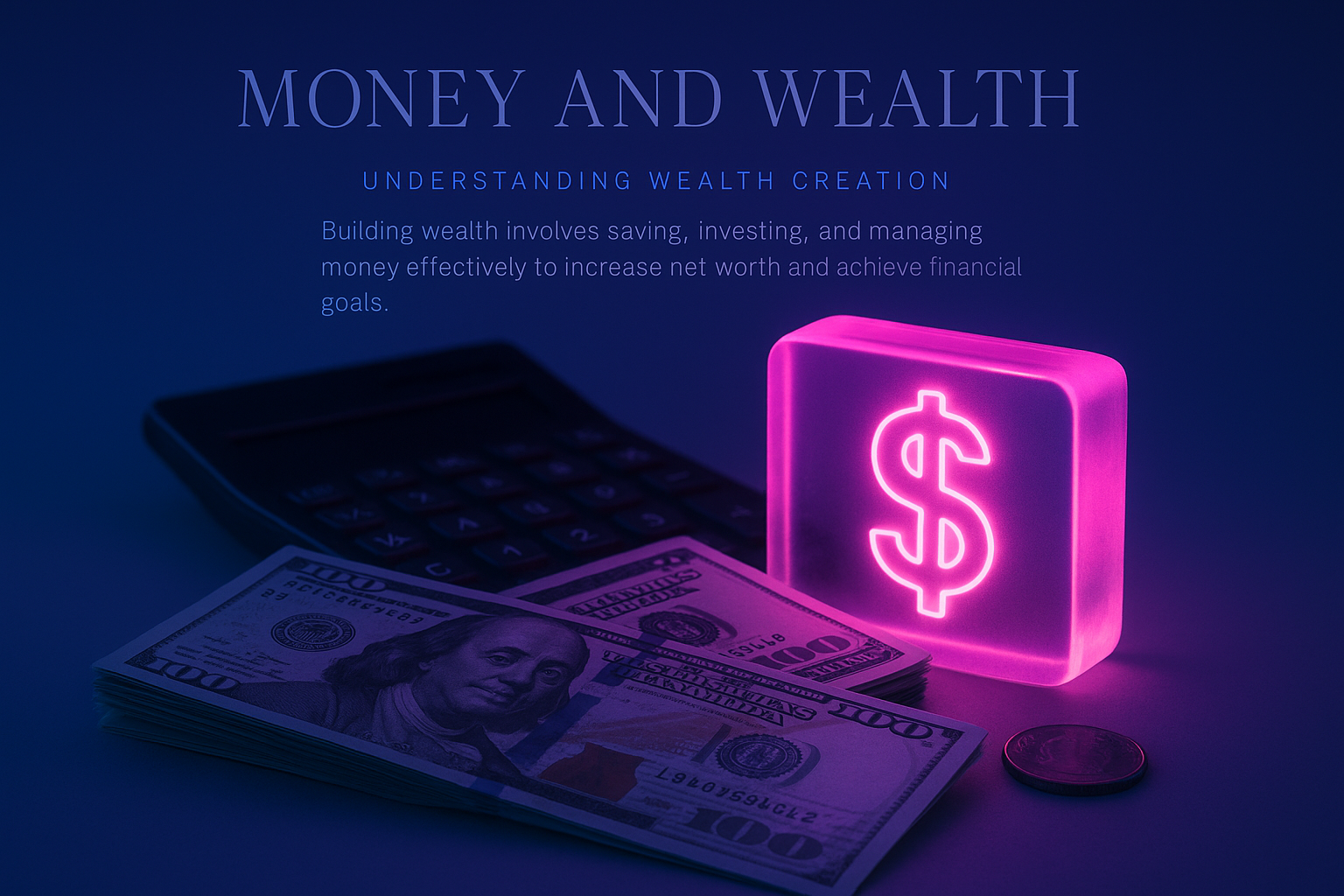 Vibrant Minimalist Wealth Illustration with Cash and Coin