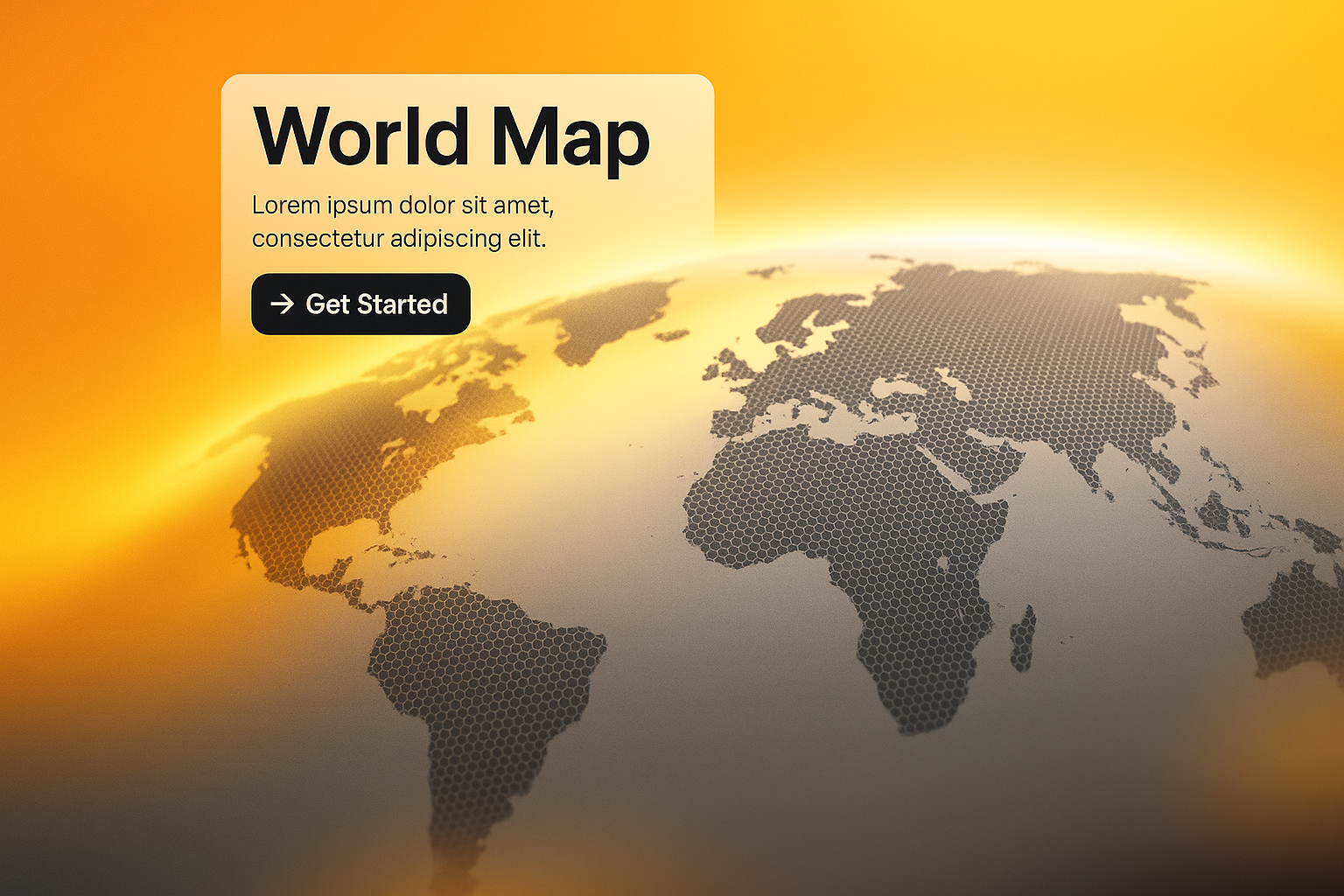A digital illustration of a world map with a warm gradient background and a call-to-action button. Ideal for travel or global business themes.