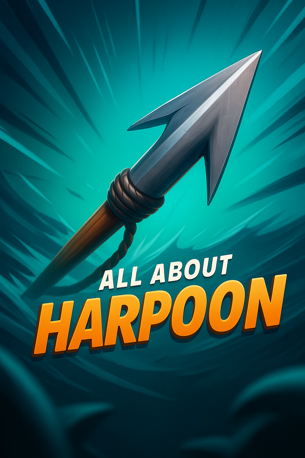 A striking 3D illustration of a harpoon, featuring dynamic lines radiating from the center. The composition highlights the harpoon against a smooth gradient background, capturing a sense of movement and energy.