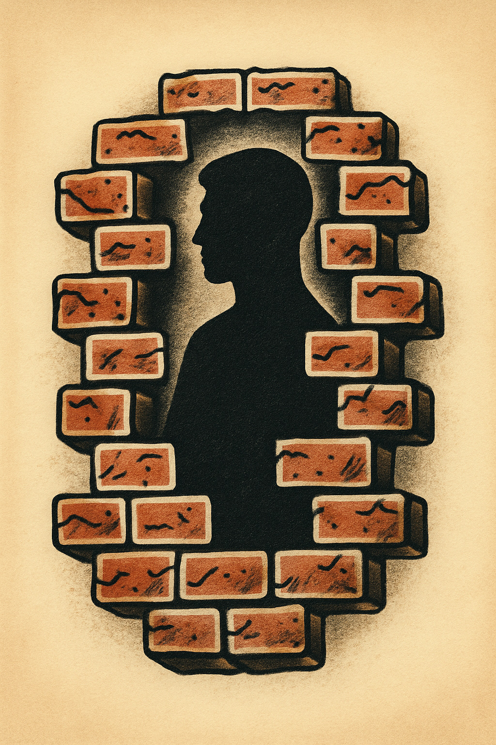 Classic Brick Wall Tattoo Design with a Strong Figure