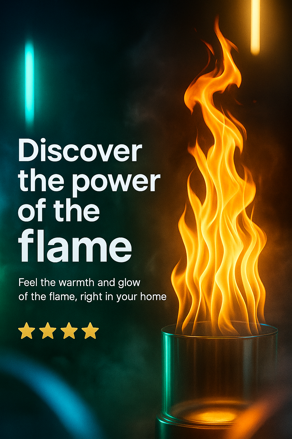/Collection: /by davooda/Type: PNG/A vibrant carousel slide design showcasing a glowing flame. The composition features neon accents and a professional layout with layered elements, perfect for captivating viewers.