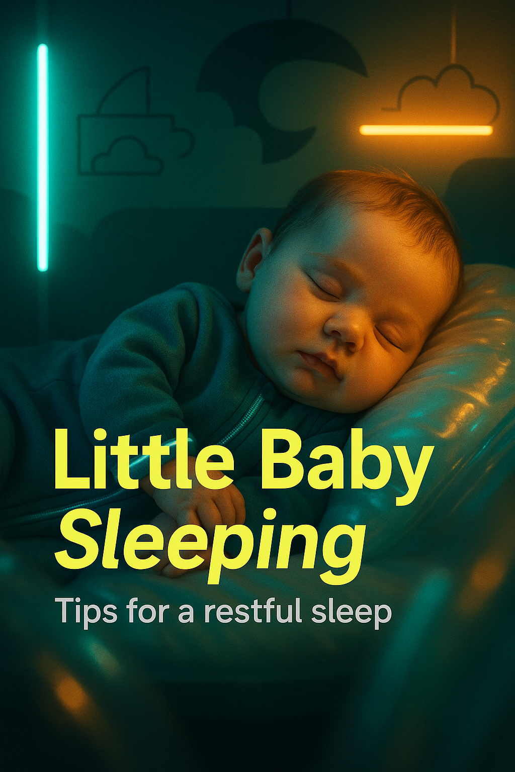 A tranquil photograph of a peacefully sleeping baby, highlighted by soft neon lighting. Ideal for parenting blogs or sleep-related content.