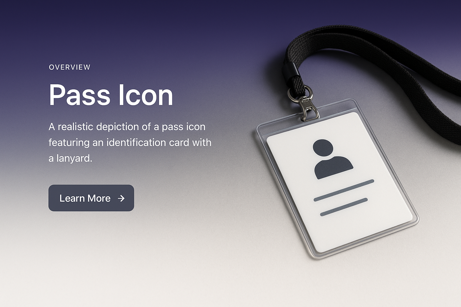 A realistic depiction of a pass icon featuring an identification card with a lanyard. The background has a gradient from dark to white, enhancing visual appeal.