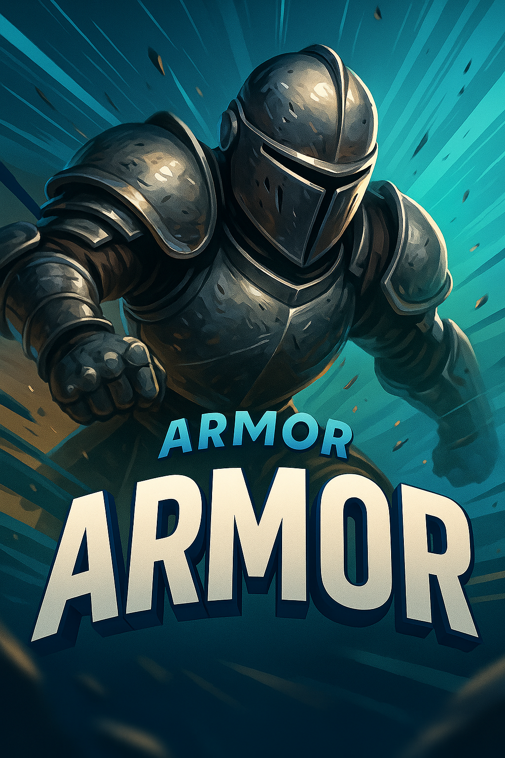 Dynamic Armor Illustration with Bold Typography