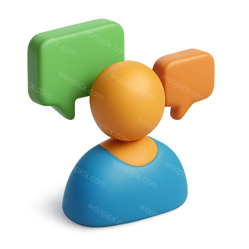 /Premium/Collection: /by davooda/Type: PNG/A vibrant 3D icon featuring a stylized figure with three speech bubbles in different colors, symbolizing communication. The design is isometric with a smooth, volumetric finish.