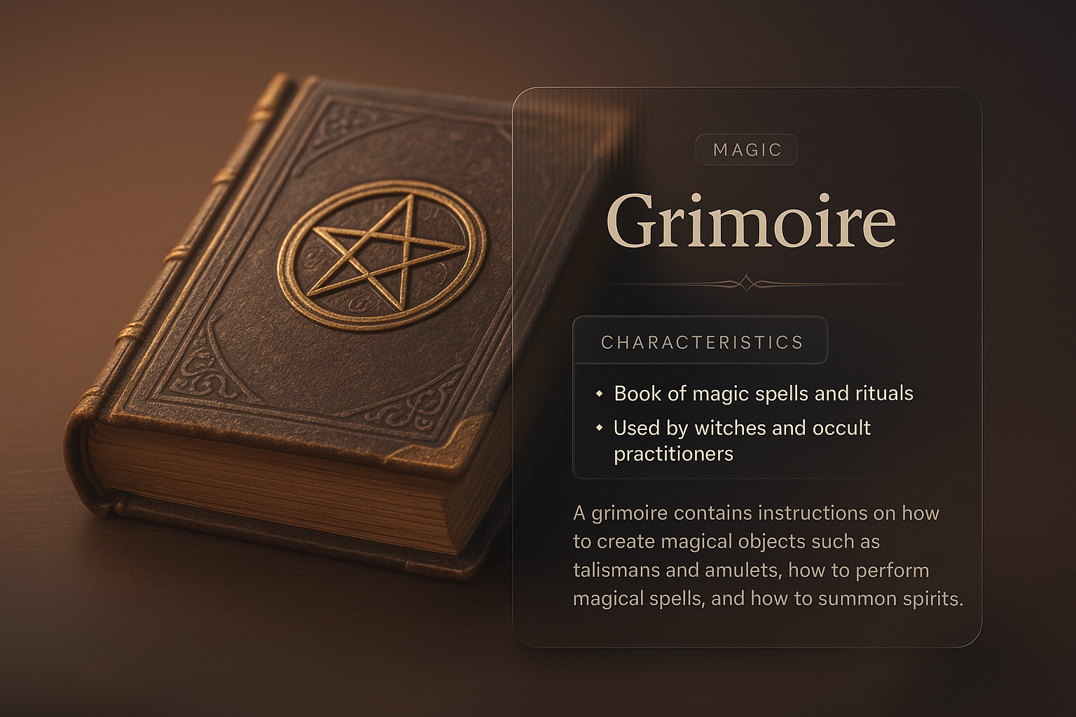 Elegant Grimoire Design with 3D Elements and Glass Effect