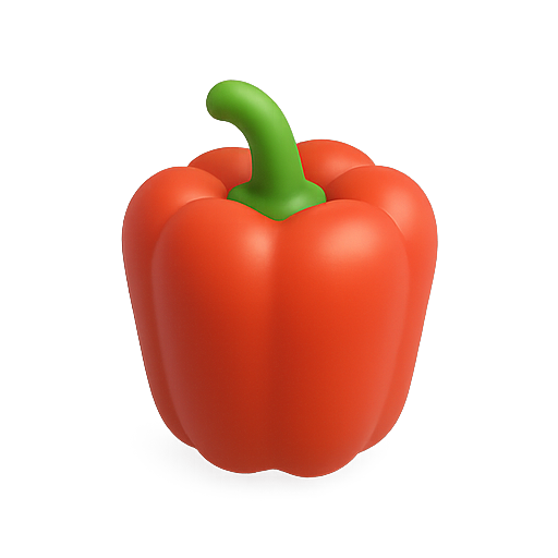 A vibrant 3D rendering of a red bell pepper featuring a smooth, glossy finish and a green stem. Ideal for food-related graphics, cooking blogs, or healthy eating campaigns.