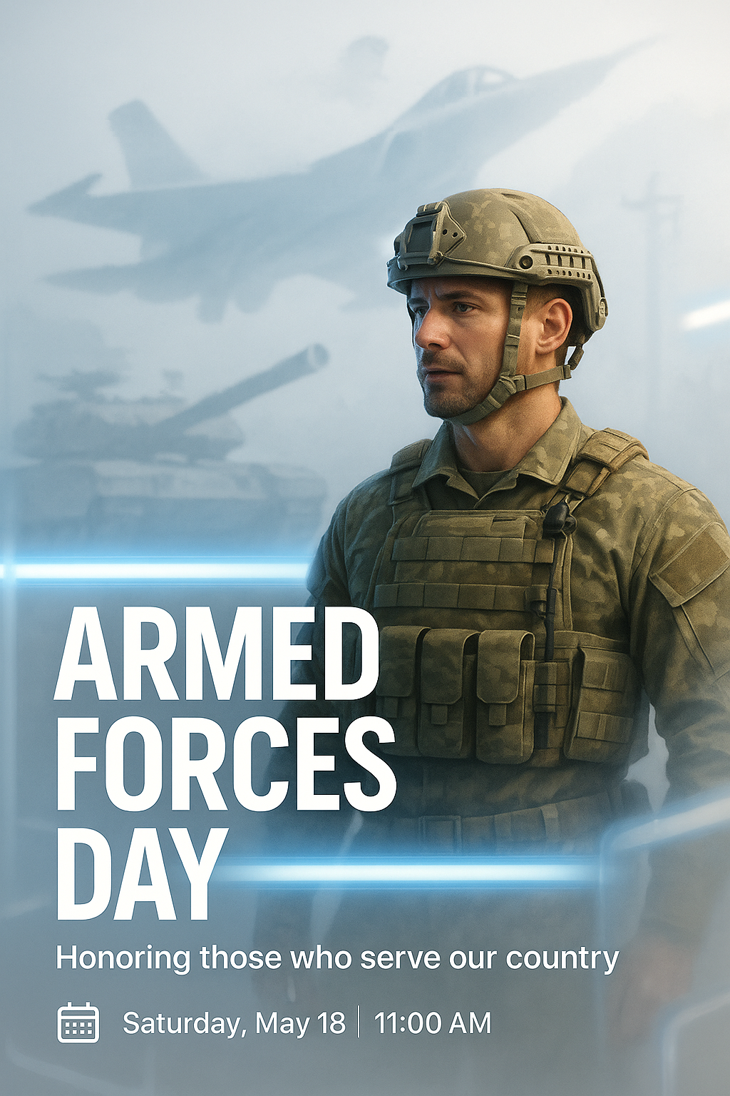 Armed Forces Day Promotional Graphic with Soldier Imagery