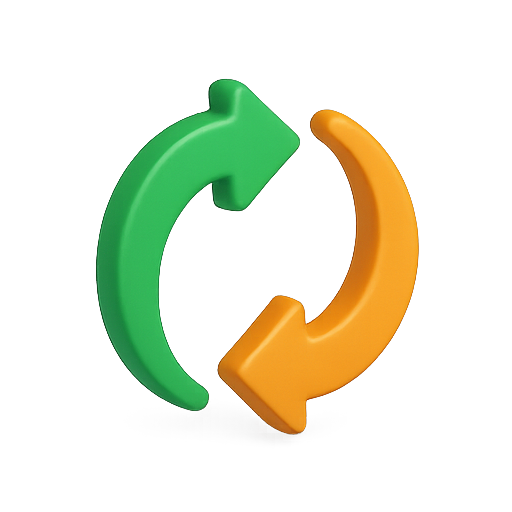 Stylish 3D icon featuring green and orange arrows in a refresh symbol design, suitable for digital applications and user interfaces.