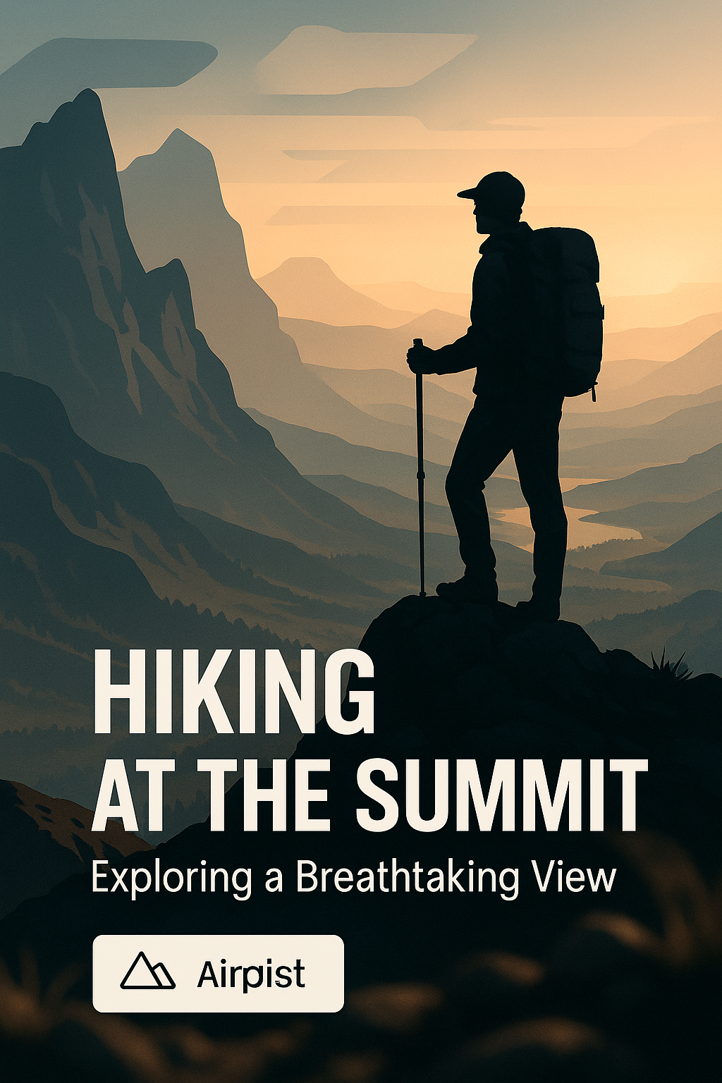 Silhouette of a Hiker at a Mountain Summit with Scenic Background