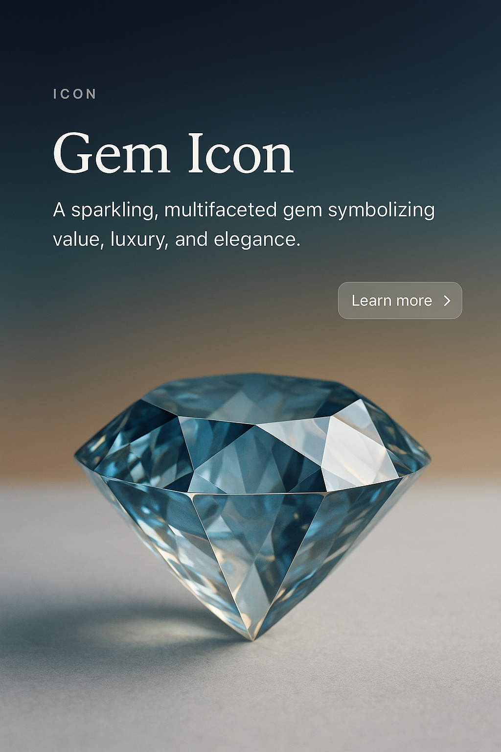 A stunning gem icon showcases a multifaceted blue diamond, representing elegance and luxury. The background features a gradient that enhances its brilliance.