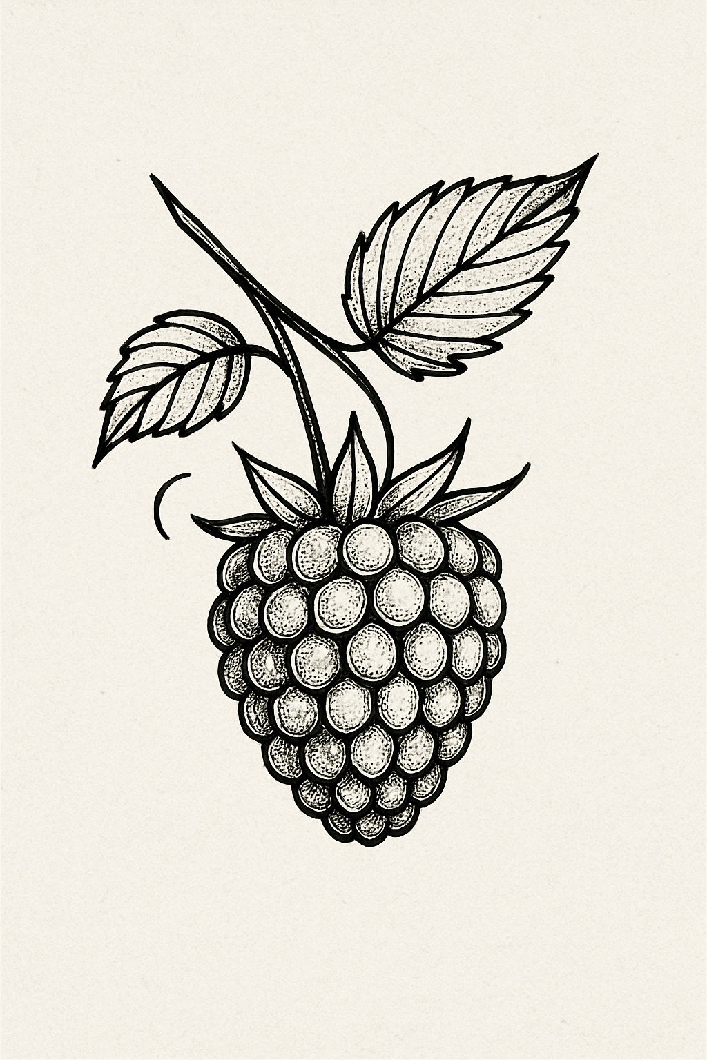 Hand-drawn raspberry illustration with leaves