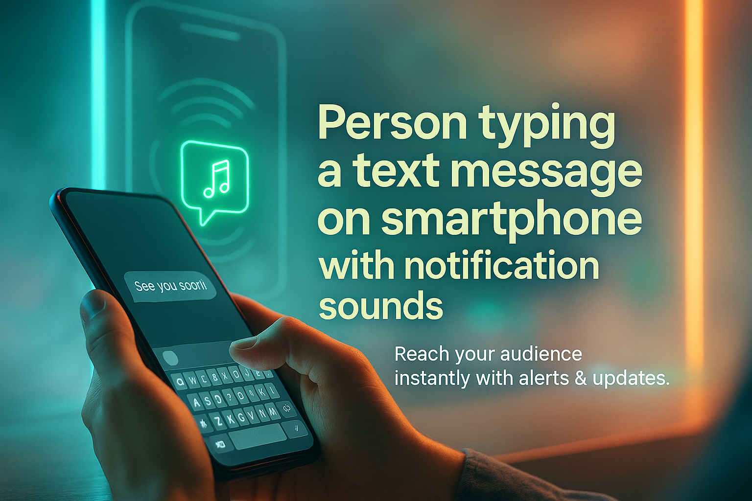 /Collection: /by davooda/Type: PNG/Visual representation of a person texting on a smartphone, highlighting notification sounds. This modern graphic is ideal for digital communication themes and marketing materials.