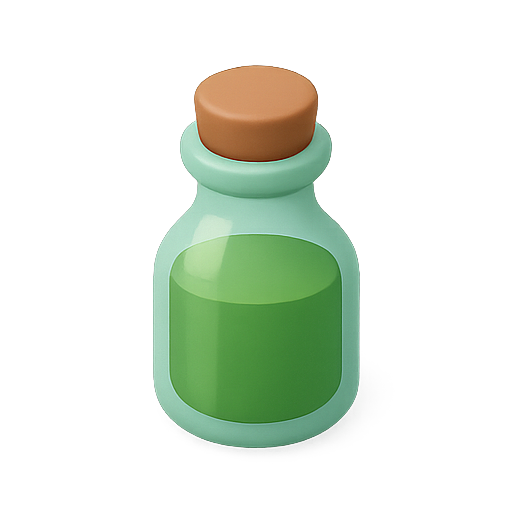A visually appealing 3D illustration of a potion bottle featuring a green liquid. The design is simple yet vibrant, ideal for gaming or fantasy themes.