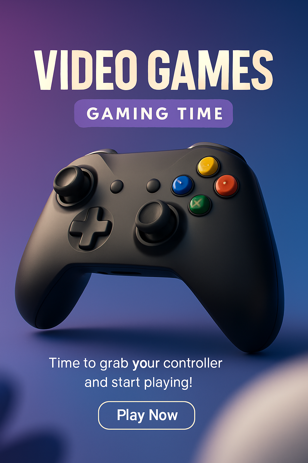 Vibrant Gaming Promotion with Controller and Call to Action