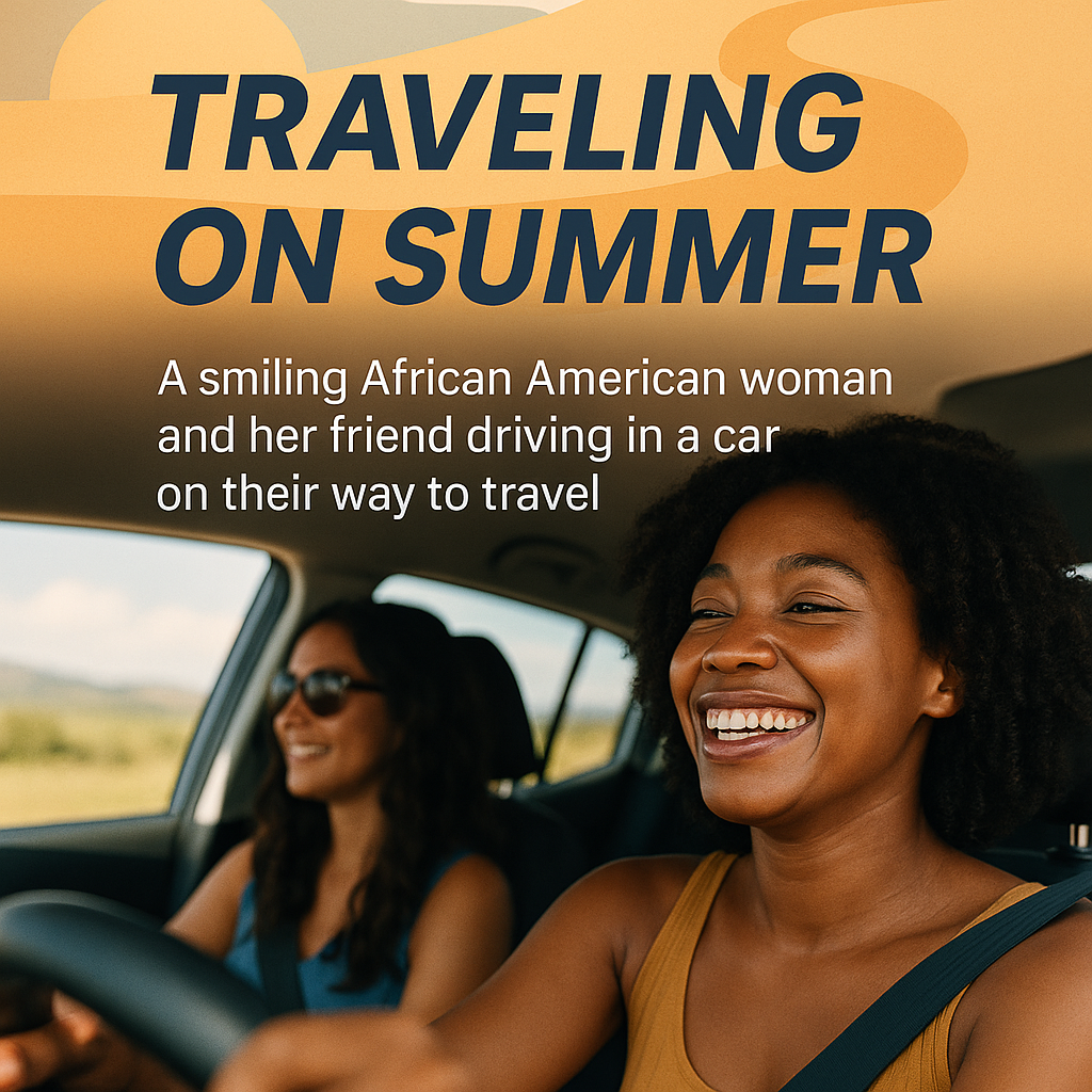 Joyful Summer Road Trip Image Featuring Friends in Car