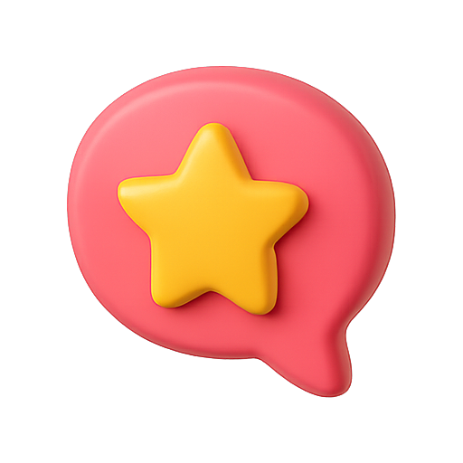 A modern and playful icon featuring a chat bubble design with a prominent star shape, ideal for messaging apps or social media platforms. The vibrant colors and 3D effect enhance its visual appeal.