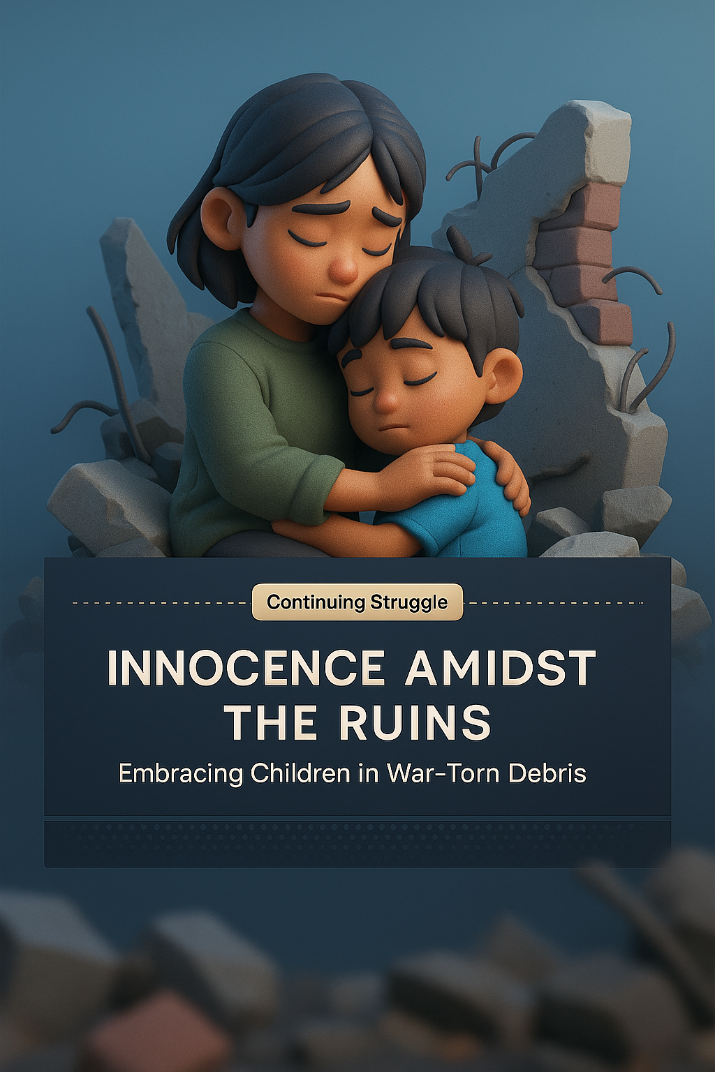Innocence Amidst the Ruins: Embracing Children in War-Torn Debris