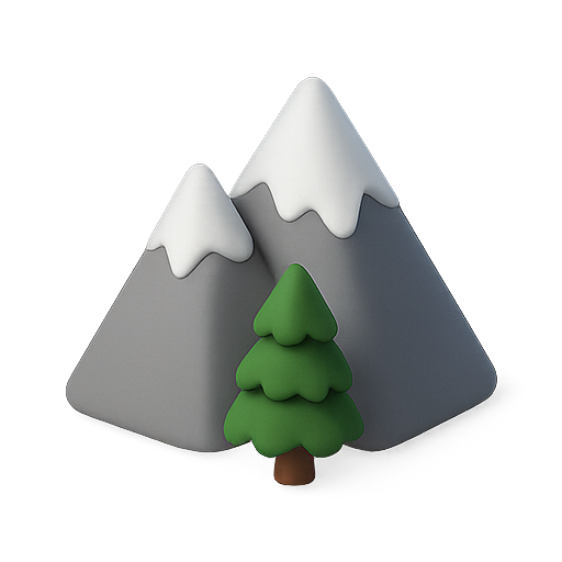 A charming 3D illustration featuring two snow-capped mountains and a green tree, perfect for nature-themed designs, educational materials, or digital applications.
