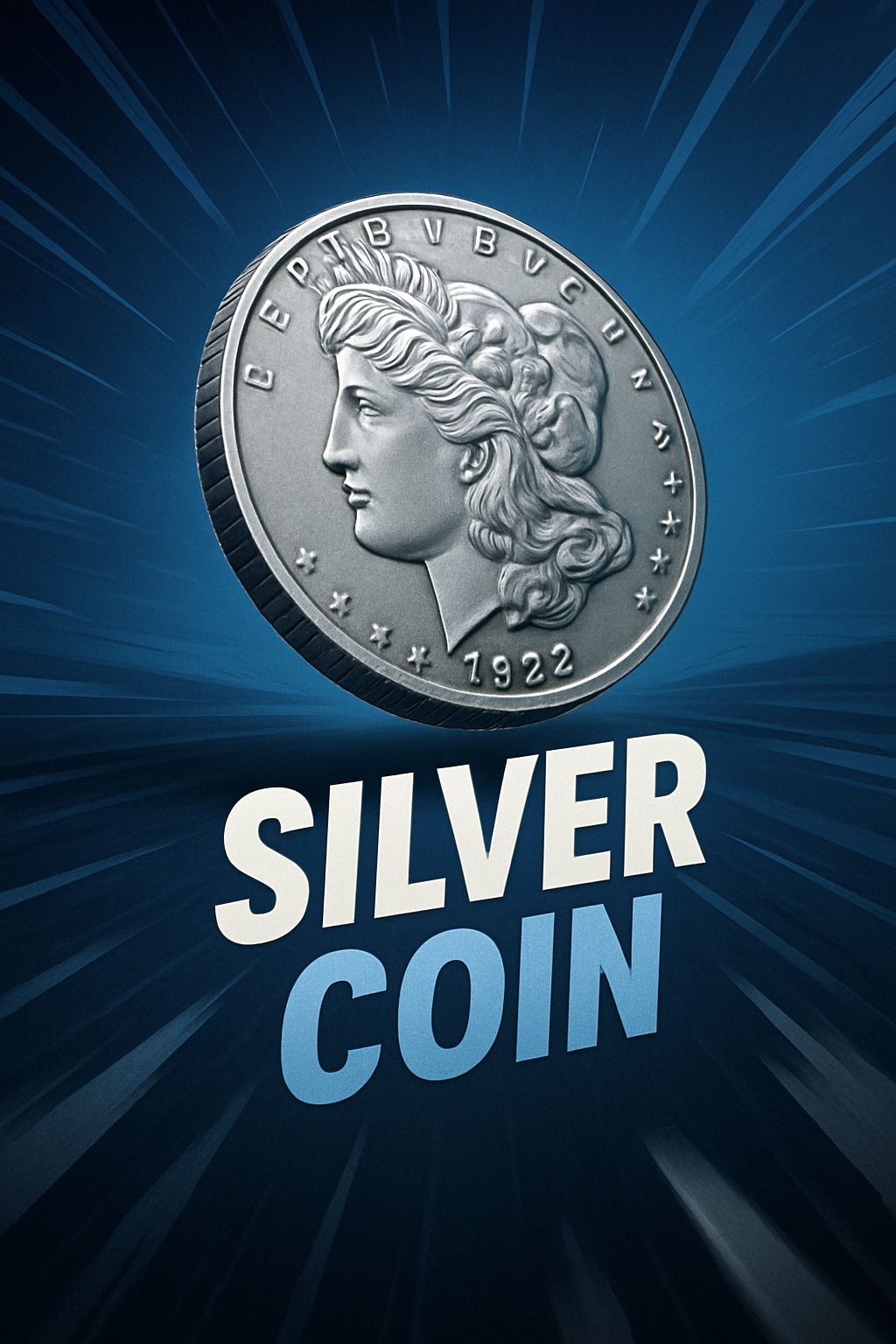 Dynamic Silver Coin Illustration with Bold Typography