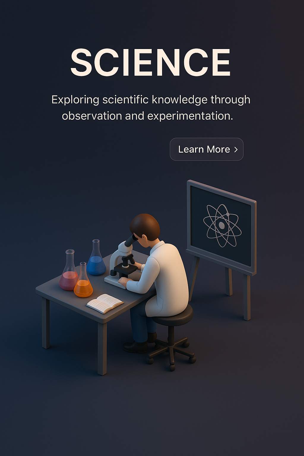 /Collection: /by davooda/Type: PNG/A detailed 3D scene showcasing a scientist examining samples under a microscope, with colorful beakers and a chalkboard in a dark gradient background. The scene emphasizes exploration and experimentation in science.