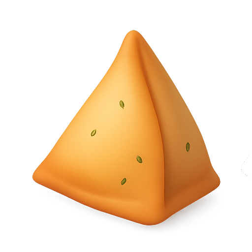 A vibrant 3D illustration of a samosa, showcasing its triangular shape and texture, perfect for food-related graphics or culinary content.