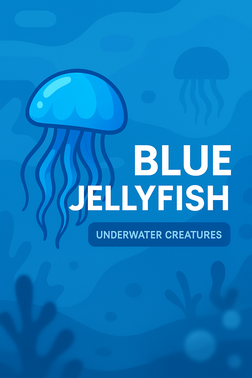 Colorful Illustration of a Blue Jellyfish in an Underwater Scene