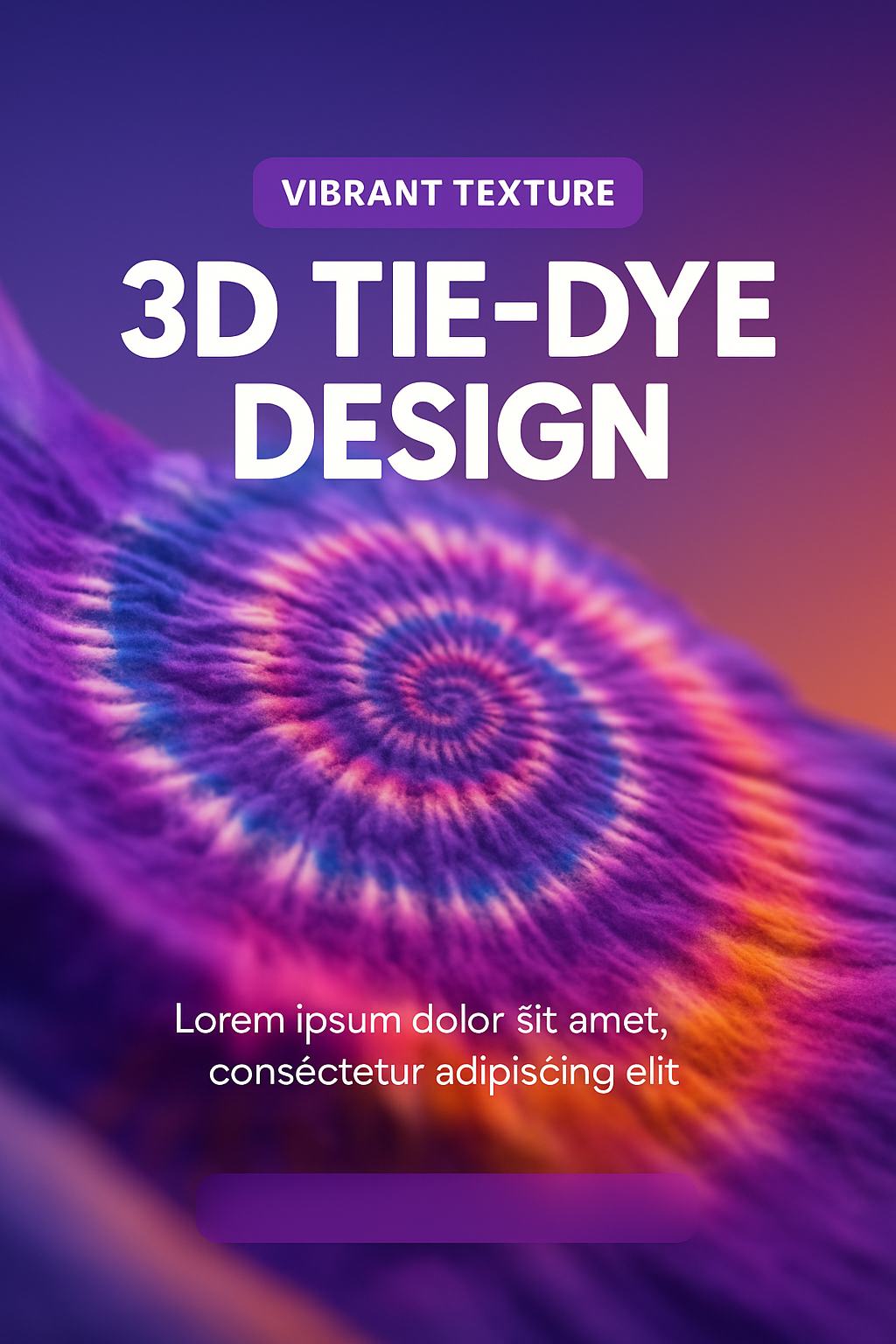 This image features a vibrant 3D tie-dye design, showcasing swirling colors and textures. It is suitable for use in creative projects, social media, or graphic design.